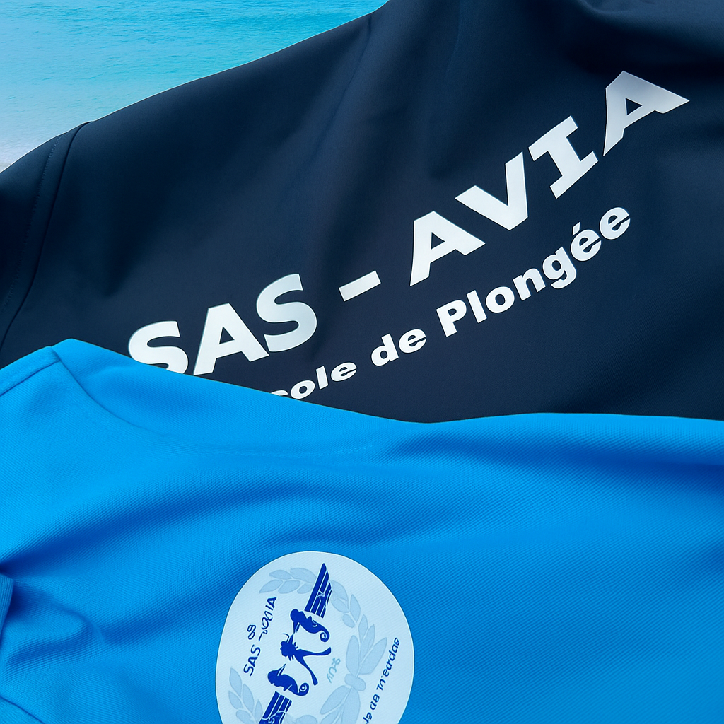 Vous pouvez désormais, depuis votre espace membre, onglet BOUTIQUE, commander un polo, un t-shirt, un sweat ou une veste avec le logo du club côté coeur et "SAS-AVIA - Ecole de plongée" dans le dos.