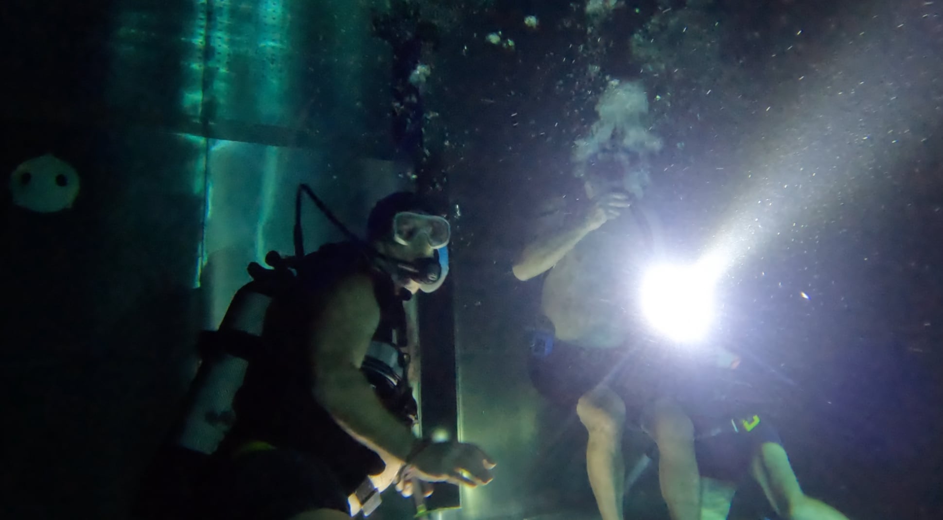 Extinction des feux ! On éteint tout et c'est l'occasion, pour certains, d'utiliser pour la première fois une lampe de plongée.